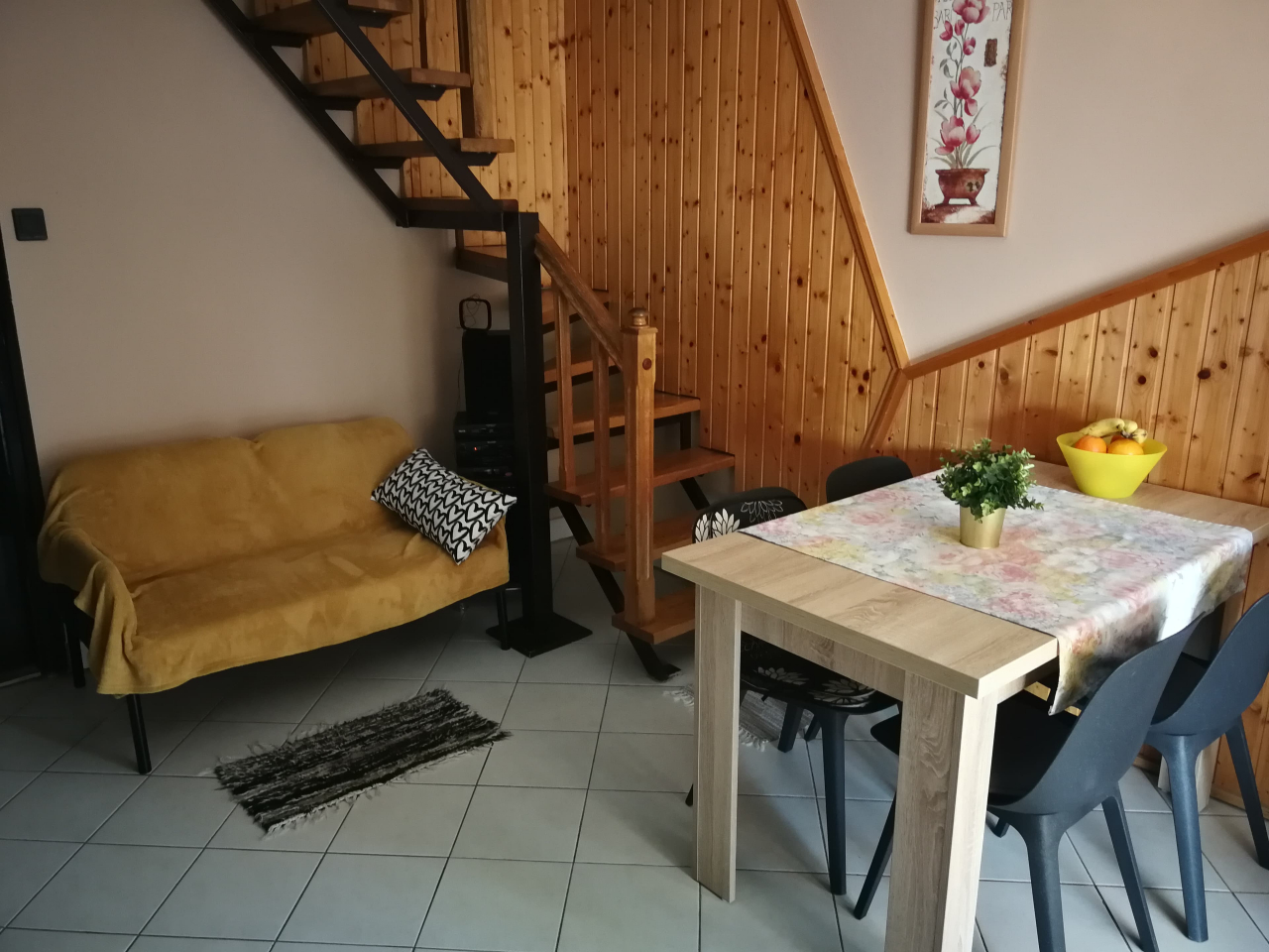 Földszint: Étkező, főzőfülke, zuhanyzó, WC, egy kétágyas szoba, fedett terasz