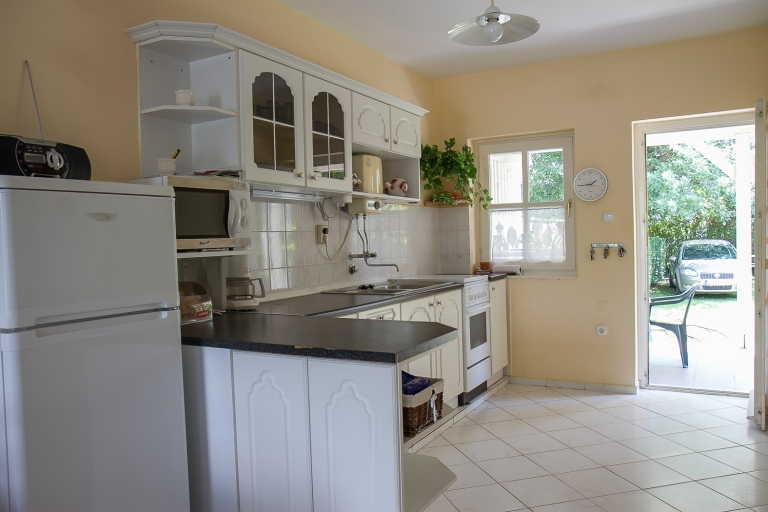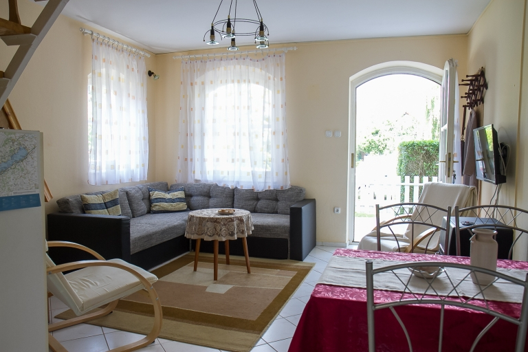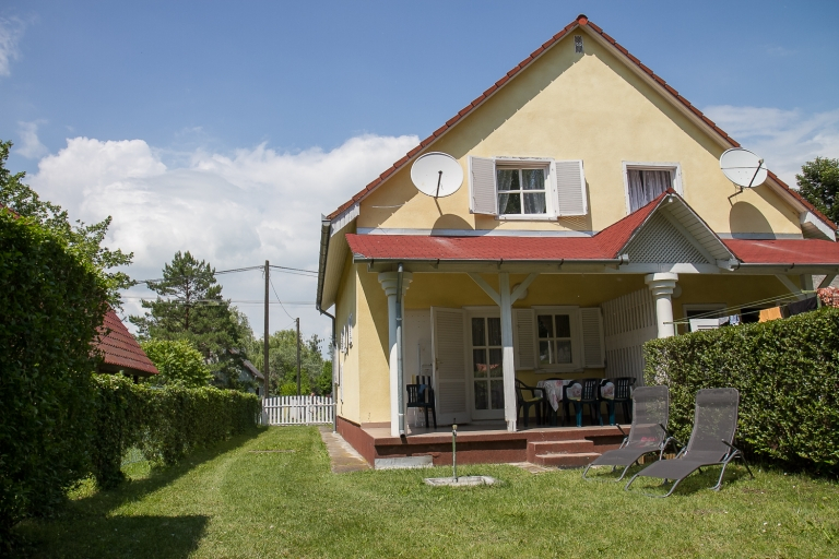 Klimatizált ikernyaraló fele 5 főre strandközeli helyen, mosógéppel. Kert, kerti bútor, napozóágyak, kerti grill, autóbeálló, SAT-TV.