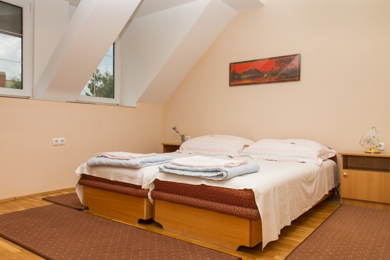 Emelet: Három kétágyas szoba, zuhanyzó/WC, balkon.